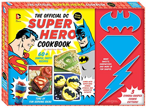 The Official DC Super Hero Cookbook comes complete with 50+ simple, tasty recipes as well as 4 cookie cutters (a bat, a lightning bolt, a shield, and a star), logo stencils and character cut-outs for awesome food styling.More than fifty tasty, simple recipes are inspired by DC's beloved characters including Superman, Batman, Wonder Woman, Green Lantern, the Flash, Aquaman, and many others! From the Up, Up and Away Parfait to Green Arrow Fruit Kebobs to Holy Guacamole and the Martian Manhunter Malted, the colorfully presented recipes are fun to prepare and to eat. Step-by-step instructions are easy to follow and fans of all ages will enjoy flipping through finish photos featuring classic DC comics art and action figures. An extensive super hero party section offers dozens of drinks, snacks, and desserts as well as cool, clever serving suggestions. This deluxe edition is packaged with a 128-page, wir-o bound (lay-flat) cookbook along with 4 cookie cutters, logo stencils, and character cut-outs for awesome food styling. Whether you're preparing an everyday family meal, or a themed party, or packing a lunch box for a picky eater, it's easy to make every dish extra special.